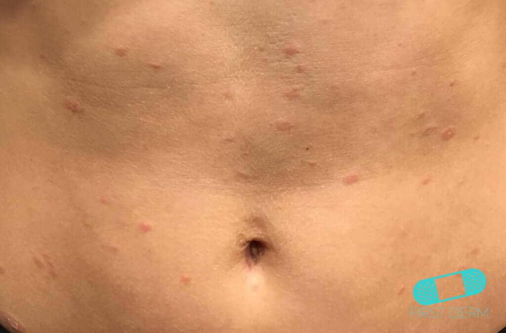 Baserat på informationen och bilderna är detta möjligtvis PITYRIASIS ROSEA. Inom kort dyker det upp flera röda fläckar på bålen överarmarna och benen. Pityriasis rosea Fjällros. Utslagen börjar oftast som ett litet antal rodnade lite större fjällande fläckar eller röda prickar cirka 2-6 cm stora som sitter på övre delen av kroppen.